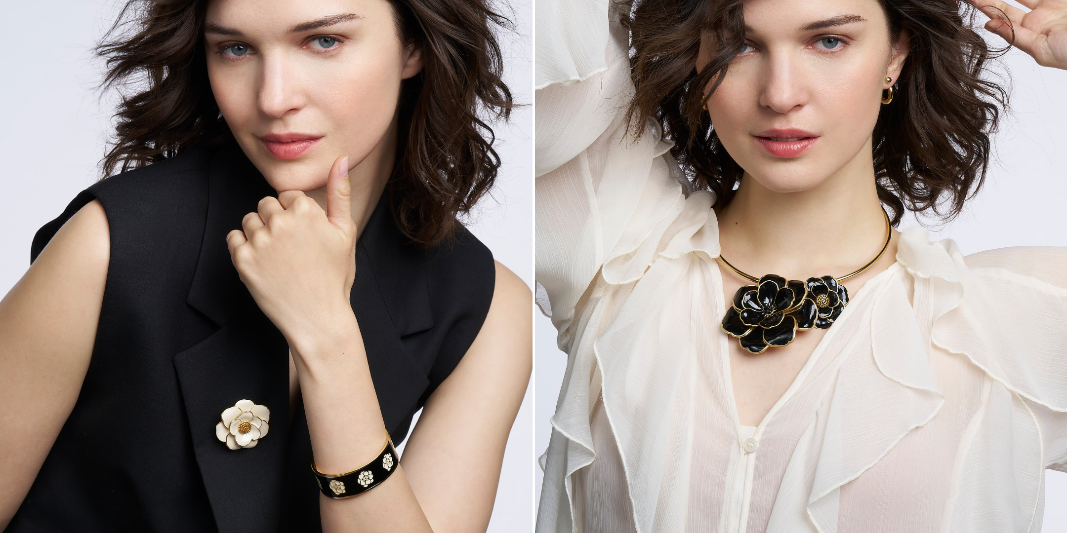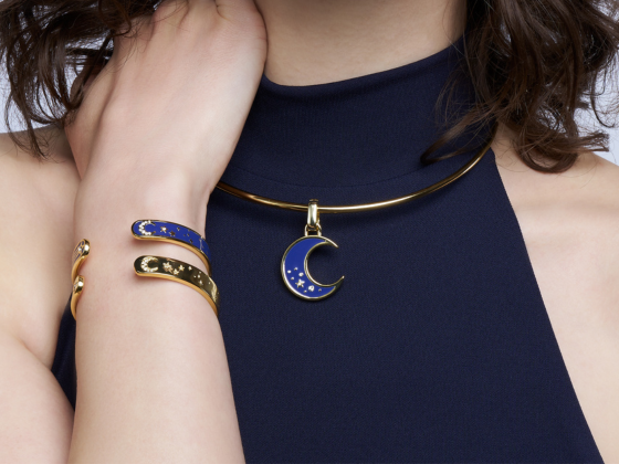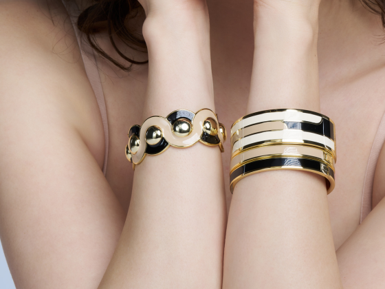 Bijoux singuliers, ils se caractérisent par leur design maison épuré, par leurs motifs cloisonnés ainsi que par leurs imprimés identitaires déclinés dans plusieurs coloris. Joyeusement modulables, ils s’articulent à travers une diversification de portés baptisée : le up-wear ou s’expriment librement en solo.