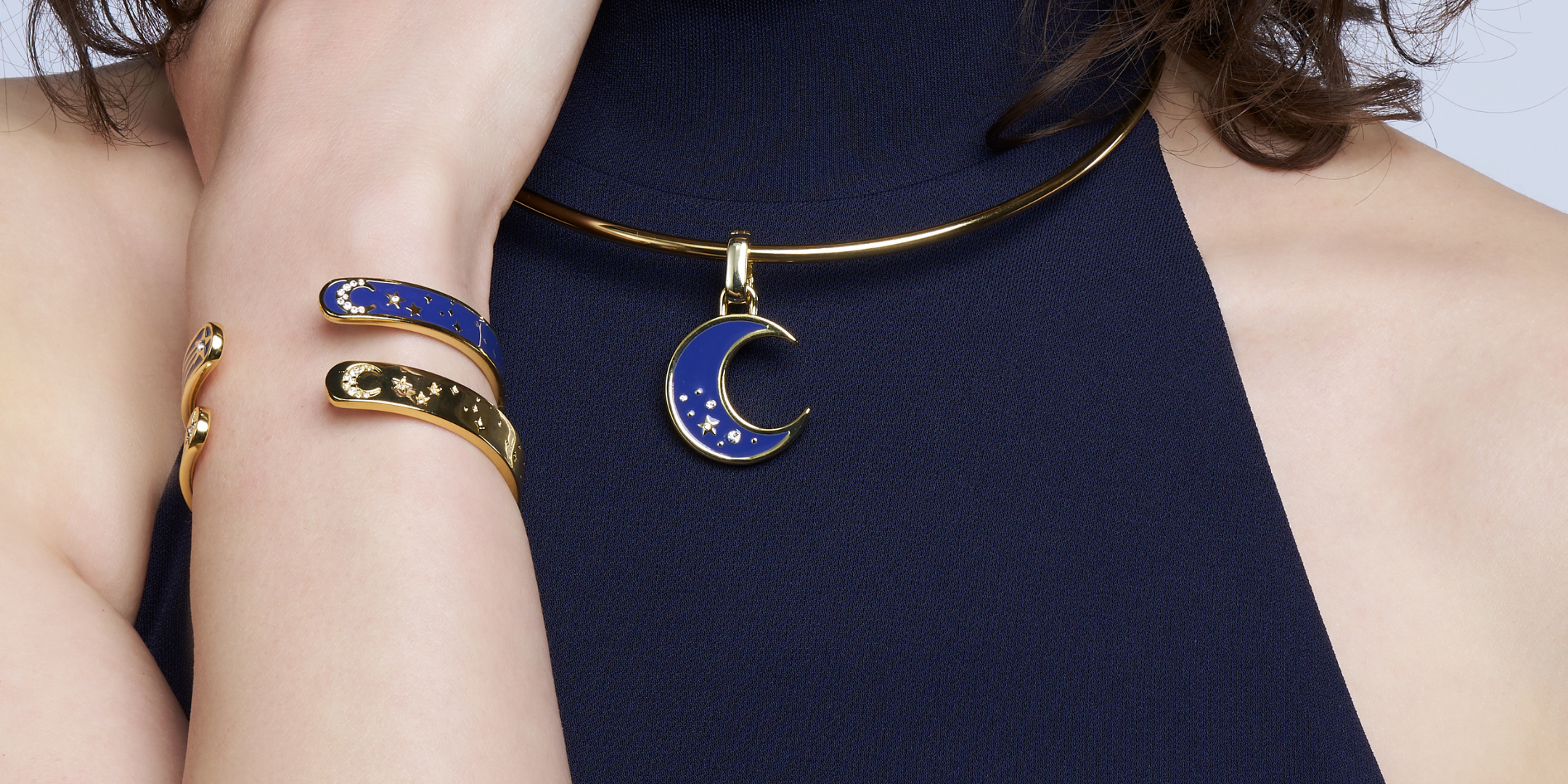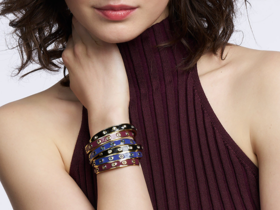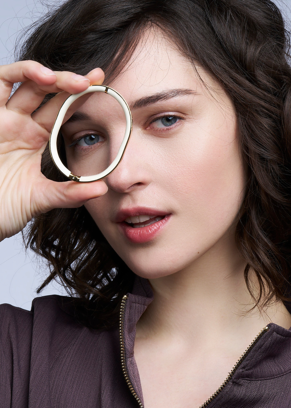 Bijoux singuliers, ils se caractérisent par leur design maison épuré, par leurs motifs cloisonnés ainsi que par leurs imprimés identitaires déclinés dans plusieurs coloris. Joyeusement modulables, ils s’articulent à travers une diversification de portés baptisée : le up-wear ou s’expriment librement en solo.