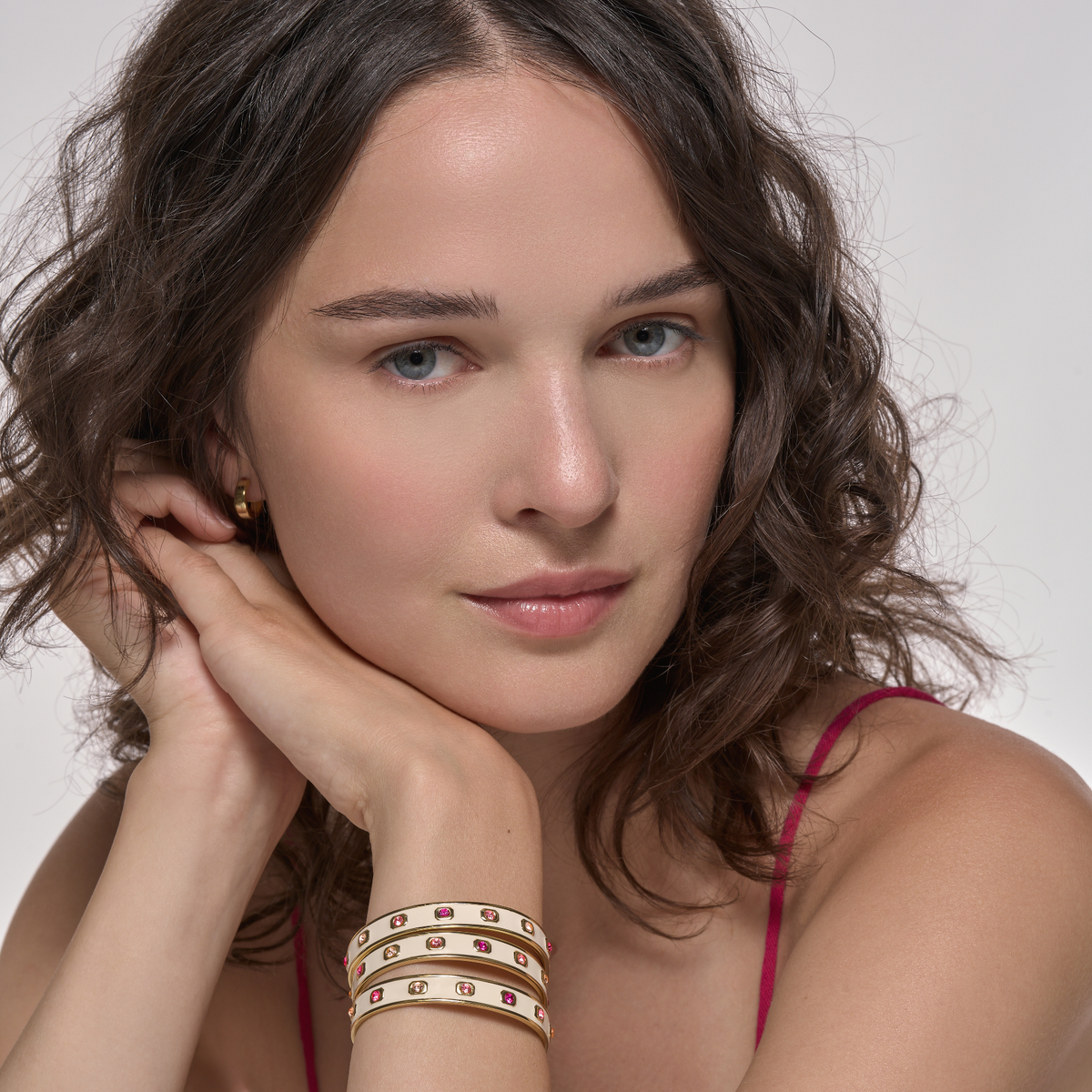Pour chaque Jonc GEM x MDF – Rose acheté, Bangle-Up s’engage à reverser une partie des bénéfices à la Maison des Femmes. Une création lumineuse, à craquer pour l’éclat du cloisonné en émail et des strass, signature de la ligne GEM.